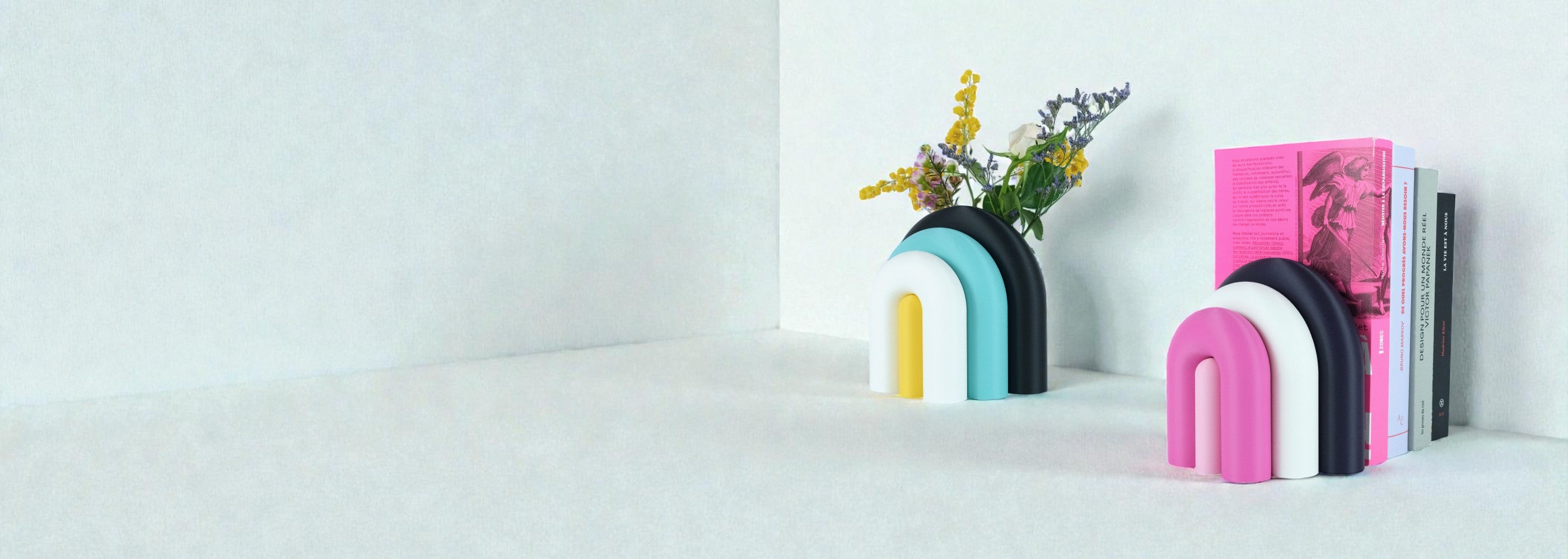 Serre-livre ou vase, Arc se transforme d'un simple geste.