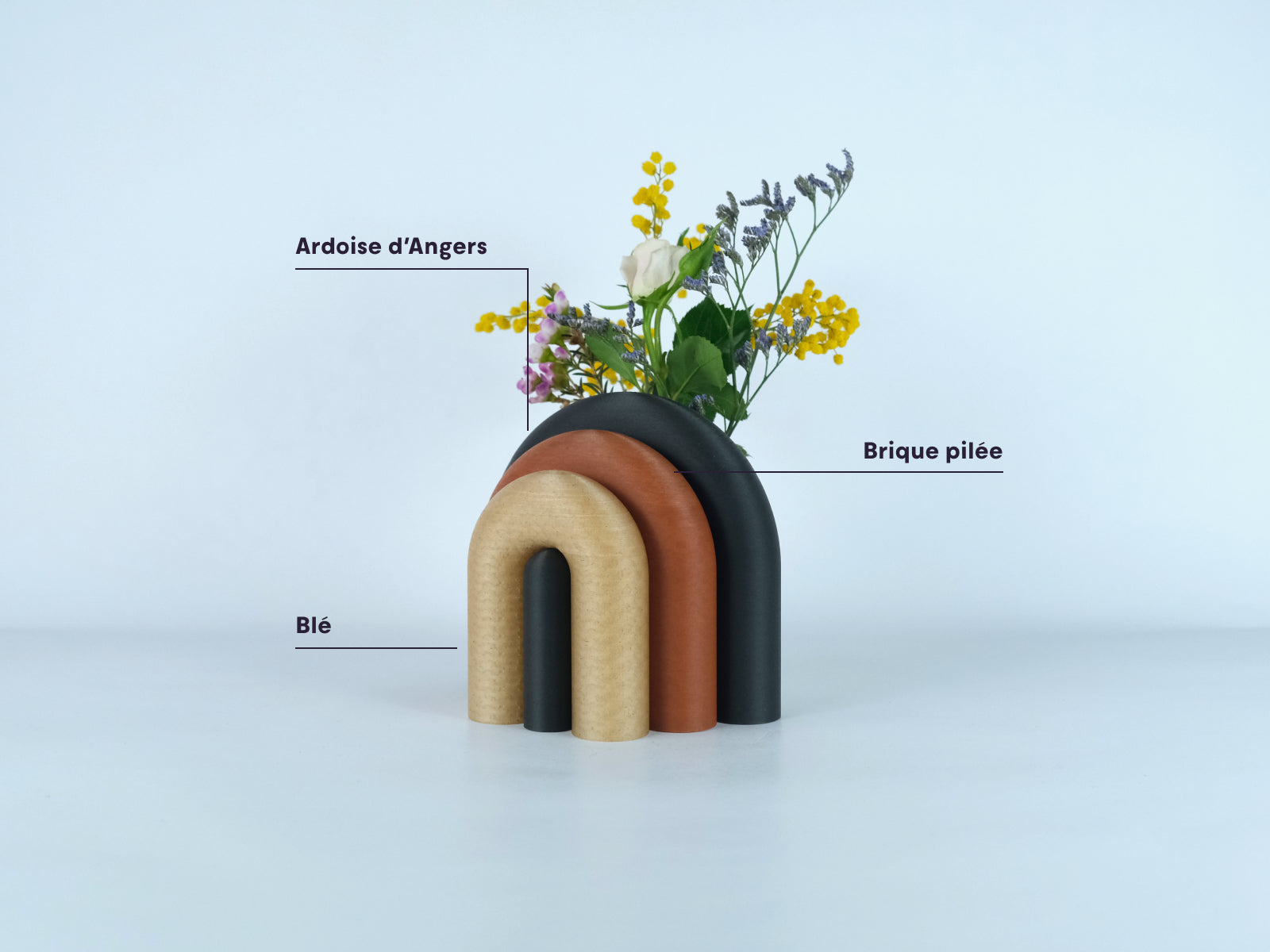 Cette édition spéciale célèbre l'économie circulaire. Elle revalorise des ressources locales : ardoise des carrières angevines, terre battue issue de briques pilées et résidus de blé de l’industrie céréalière.