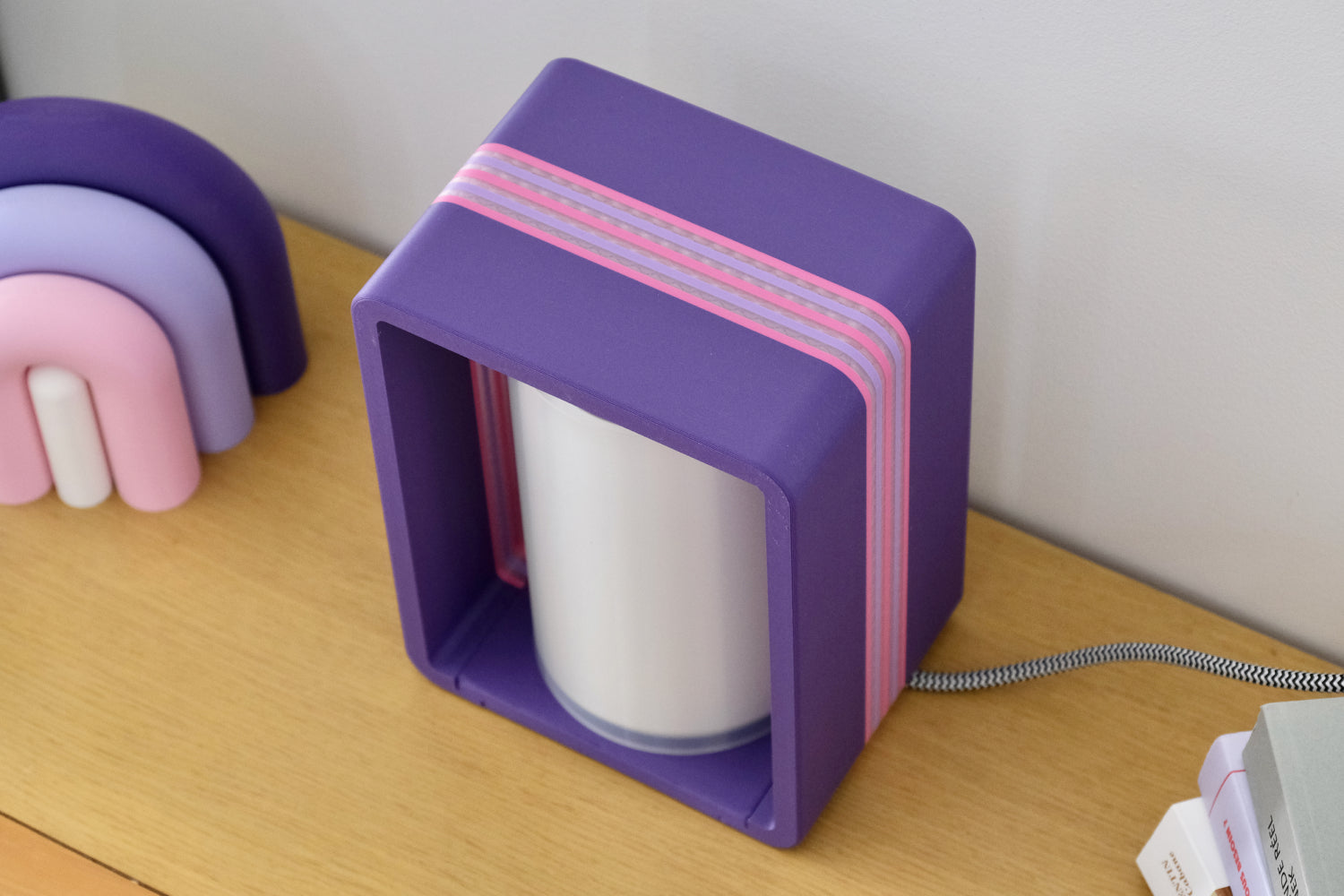 Cette lampe à poser est imprimée en 3D, un procédé qui peut donner lieu à quelques irrégularités mineures et confère à chacune d’entres elles un caractère unique.